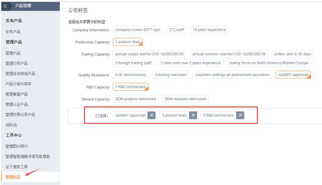 公司标签代表公司在某方面的能力,公司标签将展示在旺铺、供应商搜索页面,增强买家信心,归纳企业实力。