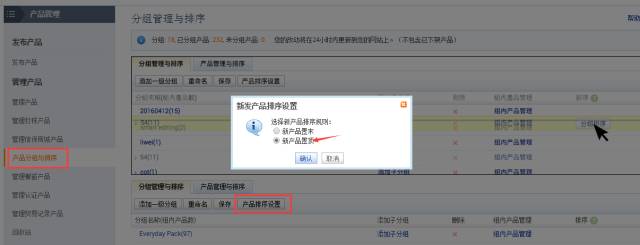 进入路径:“产品管理”-“产品分组与排序”
