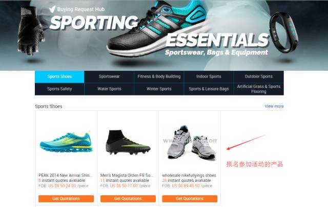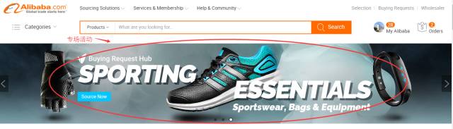 后台经常会不定期出专题活动,这些活动大部分将会在alibaba.com的首页以大海报展示,这些海报点击将会进入报名参加本活动的产品(流量啊流量!这些活动都是免费参与的,你懂得!)