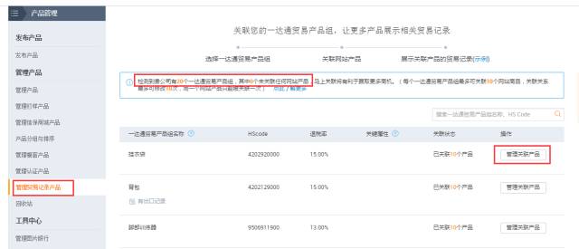进入路径:“产品管理”-“管理贸易记录产品”