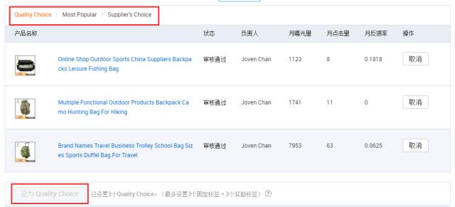 当产生信保订单后,后台会生成“Quality Choice”、“Most Popular”、“Supplier’s Choice”三个标签。