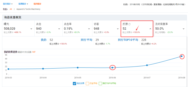 这对于一家长期利用阿里巴巴开发买家的供应商来说,半年的数据段完全不足以分析整个网站的长期运营走势情况,所以需要每个月收集并留存数据,年终总结时,运营团队完全可以利用这些数据进行excel分析,充分了解平台一年甚至两年期间的数据变化,从而采取进一步的运营策略和方法。