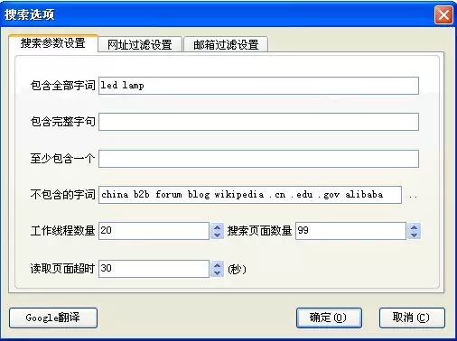 第四栏那里是不包含的字词,可以看到我朋友的软件默认有:china b2b forum blog wikipedia .cn .edu .gov alibaba